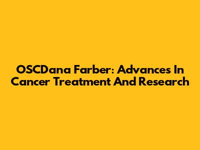 OSCDana Farber: Advances In Cancer Treatment And Research