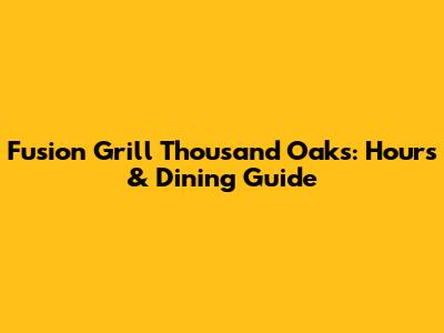 Fusion Grill Thousand Oaks: Hours & Dining Guide