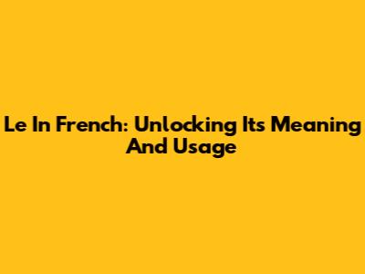 Le In French: Unlocking Its Meaning And Usage