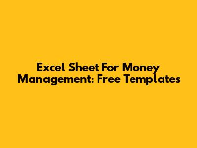Excel Sheet For Money Management: Free Templates
