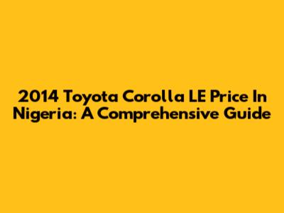 2014 Toyota Corolla LE Price In Nigeria: A Comprehensive Guide