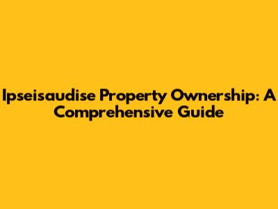 Hey guys! So, you're thinking about owning property in Ipseisaudise? Awesome! It's a big decision, for sure, but also a super exciting one. Property ownership is a cornerstone of building wealth and providing stability. But before you jump in, there's a bunch of stuff you should know. This guide is designed to walk you through the entire process, from understanding the local real estate market to navigating the legal landscape and finding the perfect property. Let’s dive into everything you need to know about ipseisaudise property ownership, covering the ins and outs to make your journey smoother.