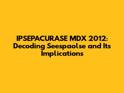 The Interplay Between IPSEPACURASE MDX 2012 and "Seespaolse"