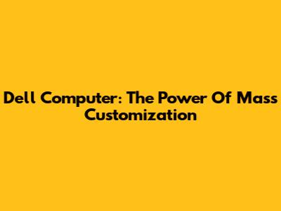 Dell Computer: The Power Of Mass Customization