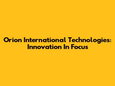 Orion International Technologies: Innovation In Focus