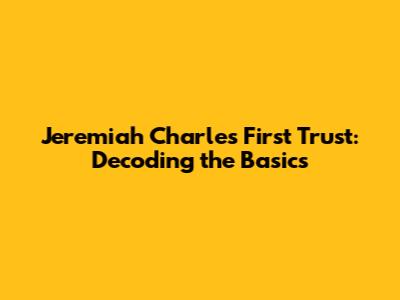 Hey guys! Ever heard of Jeremiah Charles First Trust? If you're scratching your head, no worries! This article is your friendly guide to understanding what it is, why it matters, and how it works. We're going to break down everything in a way that's easy to digest, no complicated jargon here, promise! So, buckle up, and let's dive into the world of trusts, specifically the Jeremiah Charles First Trust, and how it could potentially play a role in your financial journey. Understanding trusts, especially one like the Jeremiah Charles First Trust, can be incredibly valuable in planning for the future, protecting assets, and ensuring your wishes are carried out. Whether you're just starting to explore financial planning or you're a seasoned pro, there's always something new to learn. This trust, and trusts in general, offer a range of benefits that can be tailored to fit various needs and circumstances. Keep reading to know more about the Jeremiah Charles First Trust.
