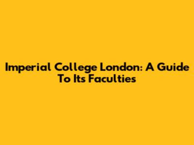 Imperial College London: A Guide To Its Faculties