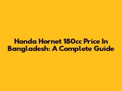 Honda Hornet 180cc Price In Bangladesh: A Complete Guide