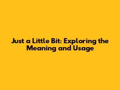 Just A Little Bit: Exploring The Meaning And Usage