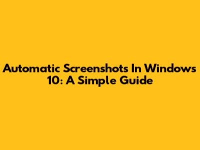 Automatic Screenshots In Windows 10: A Simple Guide