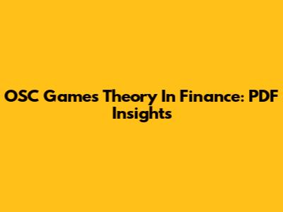 OSC Games Theory In Finance: PDF Insights