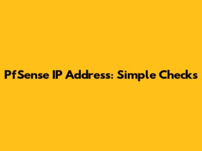 PfSense IP Address: Simple Checks