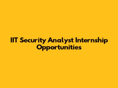 IIT Security Analyst Internship Opportunities