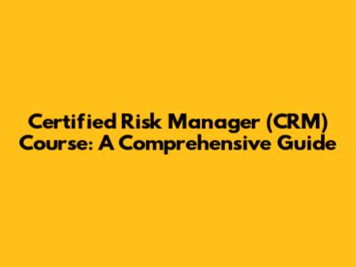 Certified Risk Manager (CRM) Course: A Comprehensive Guide