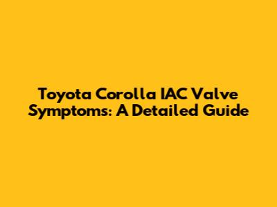 Toyota Corolla IAC Valve Symptoms: A Detailed Guide