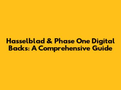 Hasselblad & Phase One Digital Backs: A Comprehensive Guide