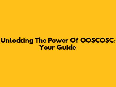 Unlocking The Power Of OOSCOSC: Your Guide