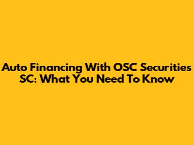 Auto Financing With OSC Securities SC: What You Need To Know