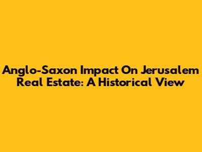 Anglo-Saxon Impact On Jerusalem Real Estate: A Historical View
