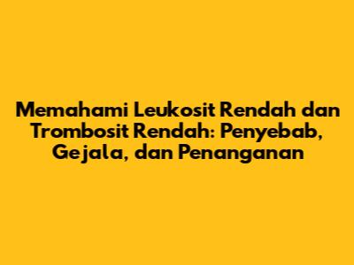 Ketika jumlah leukosit atau trombosit dalam darah berada di bawah batas normal, kita menyebutnya sebagai leukosit rendah (leukopenia) atau trombosit rendah (trombositopenia). Kedua kondisi ini dapat menyebabkan berbagai masalah kesehatan yang perlu mendapatkan perhatian medis.