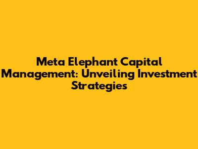 Hey guys! Ever heard of Meta Elephant Capital Management? If you're into finance or just curious about how the big players operate, you've probably stumbled upon this name. Let's dive deep into what makes Meta Elephant tick, looking at their strategies, the results they've achieved, and what sets them apart in the bustling world of capital management. This isn't your typical dry, boring financial analysis – we're going to break things down in a way that's easy to understand, even if you're new to the game. Get ready for a journey into the heart of Meta Elephant, exploring their investment philosophies and seeing what makes their approach unique. We'll be looking at everything from their investment style to performance metrics, so you get a comprehensive view. Ready to get started?