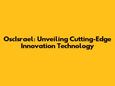 OscIsrael: Unveiling Cutting-Edge Innovation Technology