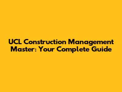 UCL Construction Management Master: Your Complete Guide