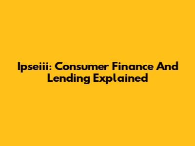 Ipseiii: Consumer Finance And Lending Explained