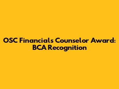 OSC Financials Counselor Award: BCA Recognition