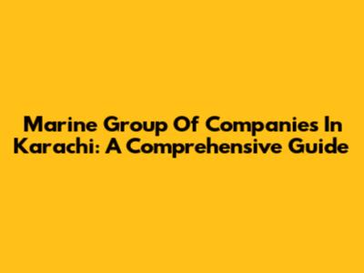 Marine Group Of Companies In Karachi: A Comprehensive Guide