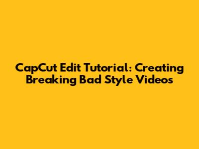 CapCut Edit Tutorial: Creating Breaking Bad Style Videos