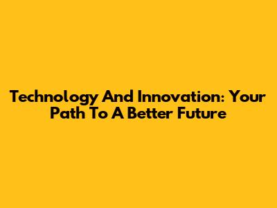 Technology And Innovation: Your Path To A Better Future