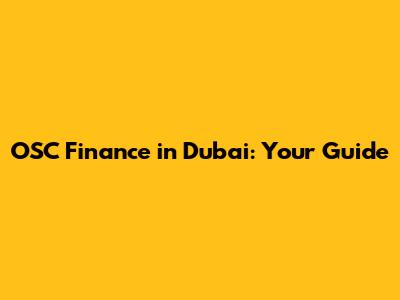 Unveiling OSC Finance in Dubai: What You Need to Know