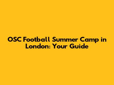 OSC Football Summer Camp In London: Your Guide