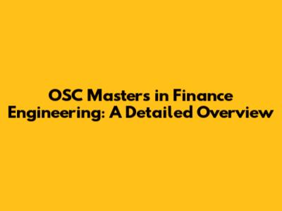 The OSC Masters in Finance Engineering is a specialized graduate program designed to equip students with the knowledge and skills needed to succeed in the quantitative finance industry. While specific curriculum details may vary depending on the university, most programs share a common set of core courses and objectives.