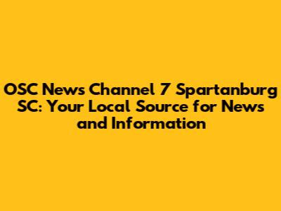 Hey guys! Are you looking to stay informed about what's happening in Spartanburg, South Carolina? Look no further than OSC News Channel 7! This is your go-to source for local news, weather updates, sports coverage, and community events. In this article, we'll dive deep into what makes OSC News Channel 7 a vital part of the Spartanburg community, how you can access their content, and why it's essential to stay connected with local news. Let's get started!