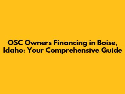 Hey there, Boise locals and potential homeowners! Let's dive into something super important when it comes to owning a home: OSC owners' financing in Boise, ID. Navigating the world of mortgages and financing can feel like a maze, but don't worry, we're going to break it down and make it easy to understand. Whether you're a first-time buyer or looking to refinance, understanding your financing options is key to making smart decisions. We'll explore what OSC owners' financing is, why it matters, and how you can get started in Boise, Idaho. So, grab a coffee, sit back, and let's unravel this together!