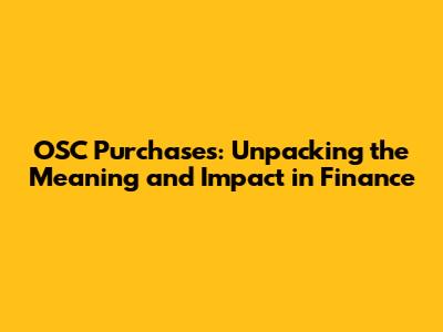 OSC Purchases: What They Are & How They Affect Finance