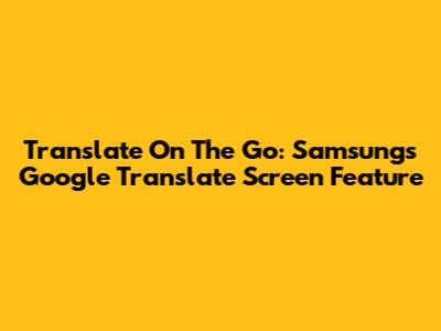 Translate On The Go: Samsung's Google Translate Screen Feature