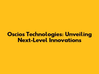 Oscios Technologies: Unveiling Next-Level Innovations