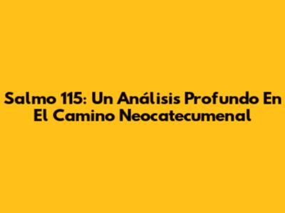 Salmo 115: Un Análisis Profundo En El Camino Neocatecumenal