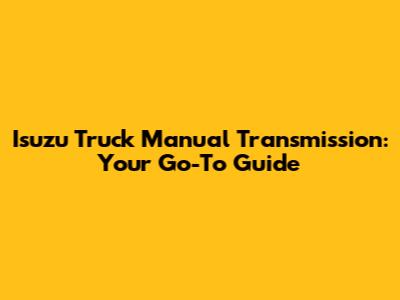 Isuzu Truck Manual Transmission: Your Go-To Guide