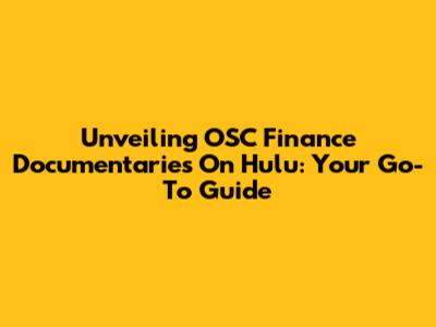 Unveiling OSC Finance Documentaries On Hulu: Your Go-To Guide
