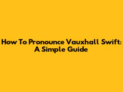 How To Pronounce Vauxhall Swift: A Simple Guide