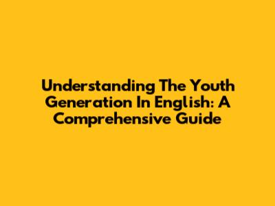 Understanding The Youth Generation In English: A Comprehensive Guide