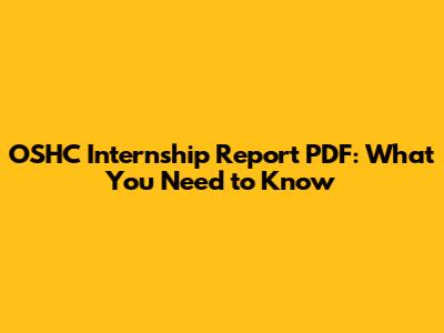 Understanding the OSHC Internship Report PDF