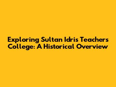 Exploring Sultan Idris Teachers' College: A Historical Overview