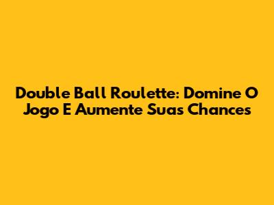 Double Ball Roulette: Domine O Jogo E Aumente Suas Chances