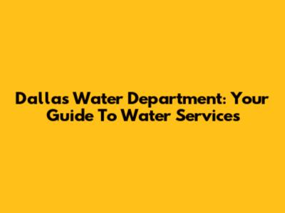 Dallas Water Department: Your Guide To Water Services