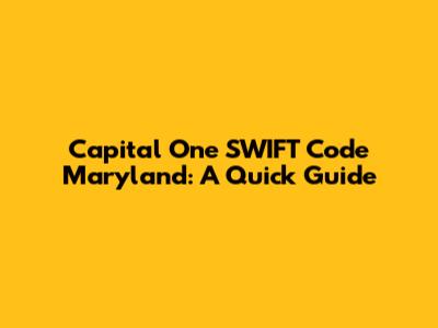 Capital One SWIFT Code Maryland: A Quick Guide